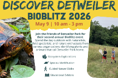 Join the Friends of Detweiler Park for their second annual BioBlitz event! Spend the day outdoors with naturalists, field specialists, and nature enthusiasts from various organizations identifying plants and animals that call Detweiler Park home. -